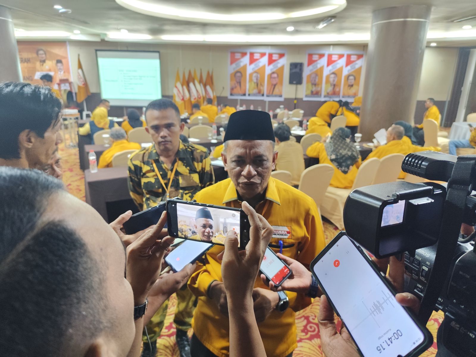 KETERANGAN: Ketua DPC Hanura Pekanbaru terpilih, Zulfahmi SE MH saat memberikan keterangan pers usai mendapatkan amanah. (Foto: siarancoid)